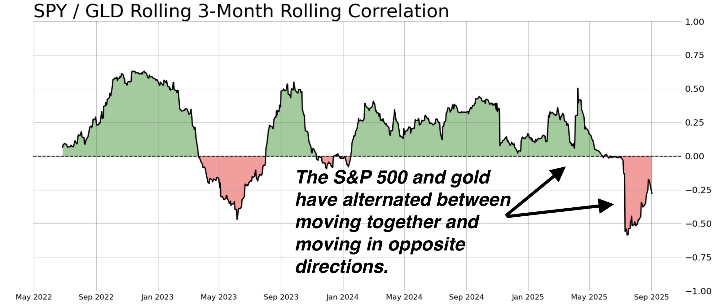The story goes that when equities fall, investors tend to flock to gold, driving prices up while stocks fall. Over the past three years, the data shows the opposite.