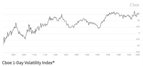 The VIX1D, or the 1-Day Volatility Index, measures expected volatility in the S&P 500 Index for the current trading day.