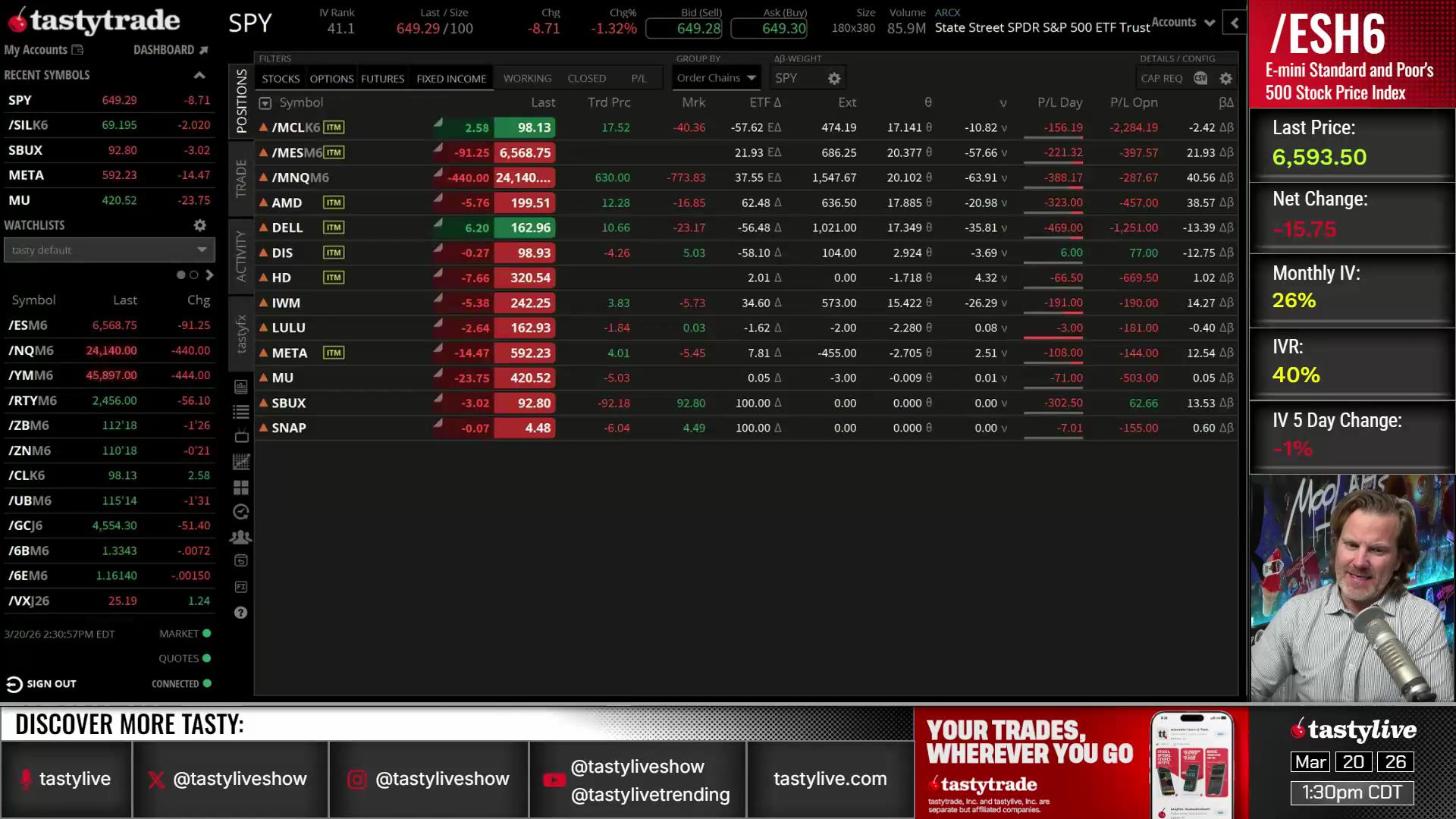 tastylive content is created, produced, and provided solely by tastylive, Inc. (“tastylive”) and is for informational and educational purposes only. It is not, nor is it intended to be, trading or investment advice or a recommendation that any security, futures contract, digital asset, other product, transaction, or investment strategy is suitable for any person. Trading securities, futures products, and digital assets involve risk and may result in a loss greater than the original amount invested. tastylive, through its content, financial programming or otherwise, does not provide investment or financial advice or make investment recommendations. Investment information provided may not be appropriate for all investors and is provided without respect to individual investor financial sophistication, financial situation, investing time horizon or risk tolerance. tastylive is not in the business of transacting securities trades, nor does it direct client commodity accounts or give commodity trading advice tailored to any particular client’s situation or investment objectives. Supporting documentation for any claims (including claims made on behalf of options programs), comparisons, statistics, or other technical data, if applicable, will be supplied upon request. tastylive is not a licensed financial adviser, registered investment adviser, or a registered broker-dealer.  Options, futures, and futures options are not suitable for all investors.  Prior to trading securities, options, futures, or futures options, please read the applicable risk disclosures, including, but not limited to, the Characteristics and Risks of Standardized Options Disclosure and the Futures and Exchange-Traded Options Risk Disclosure found on tastytrade.com/disclosures.