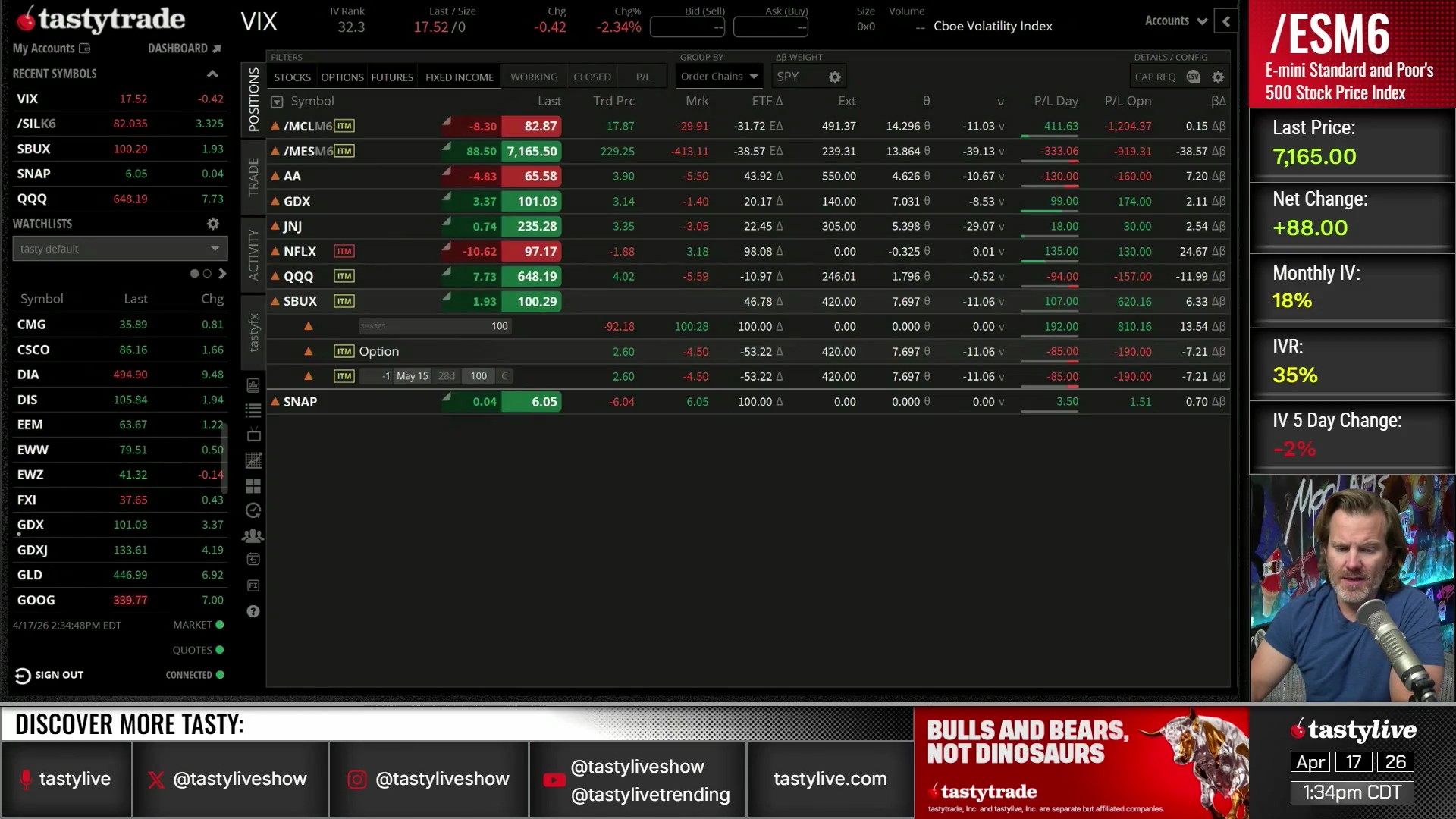 tastytrade, Inc. ("tastytrade”) is a registered broker-dealer and member of FINRA, NFA, and SIPC. tastytrade was previously known as tastyworks, Inc. (“tastyworks”). tastytrade offers self-directed brokerage accounts to its customers. tastytrade does not give financial or trading advice, nor does it make investment recommendations. You alone are responsible for making your investment and trading decisions and for evaluating the merits and risks associated with the use of tastytrade’s systems, services or products. tastytrade is a wholly-owned subsidiary of tastylive, Inc.