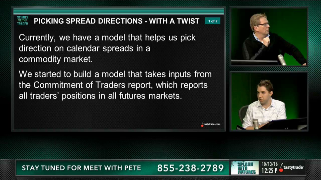 Pete and Jared expand on their crude calendar modeling.Currently, we have a model that helps us pick direction on calendar spreads in a commodity market.