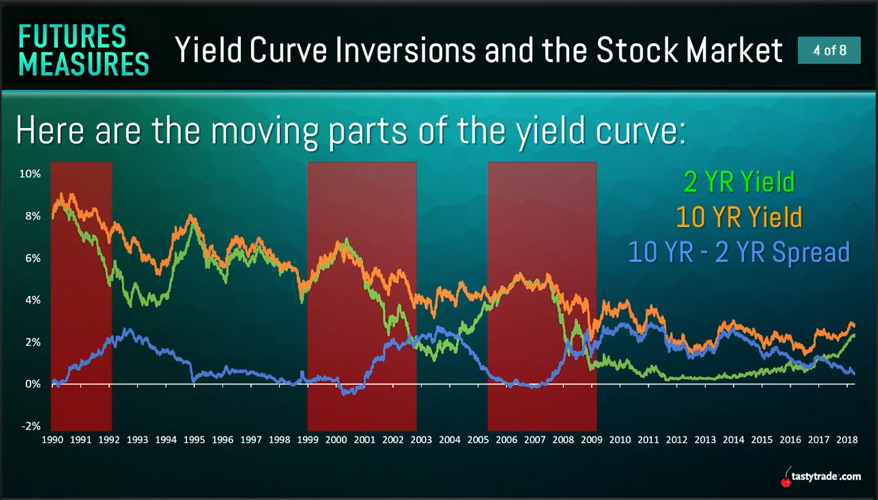 Yield Curve Inversions occur when short-term interest rates surpass long-term interest rates; the traditional way to gauge this is 2 YR yields against 10 YR yields.