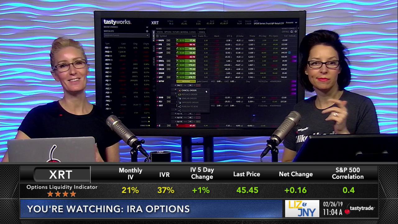 XRT is a low priced ETF that still has a high IVR, so Liz and Jenny jump back in to a big lizard with a fat tail.