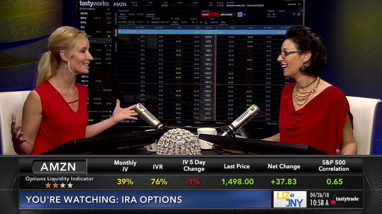 Liz and Jenny look to set up an AMZN and BIDU iron condor for earnings. Find out where they set up their strikes given the price of these underlyings, expected move, and Days to Expiration.