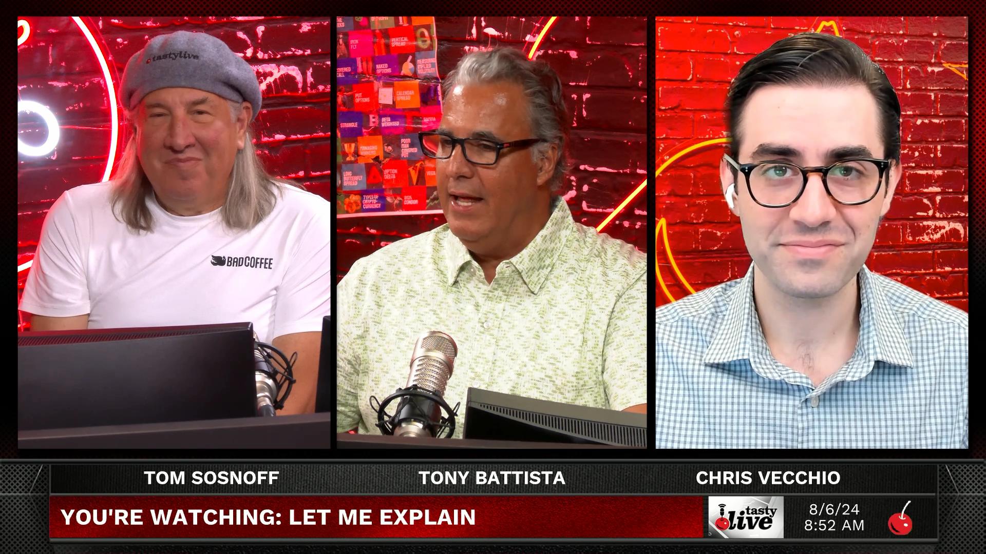 Tom Sosnoff, Tony Battista, and Chris Vecchio discuss volatile market movements, highlighting macroeconomic factors like the yen carry trade, political uncertainties, and market overexposure. They analyze the yen carry trade mechanics and its impact on equities and global deleveraging. The conversation suggests caution, advising against directional trades in favor of volatility strategies. They emphasize market patience, noting historical patterns of volatility washouts. A key takeaway is the importance of managing market exposures and expecting prolonged choppy behavior despite potential short-term recoveries.