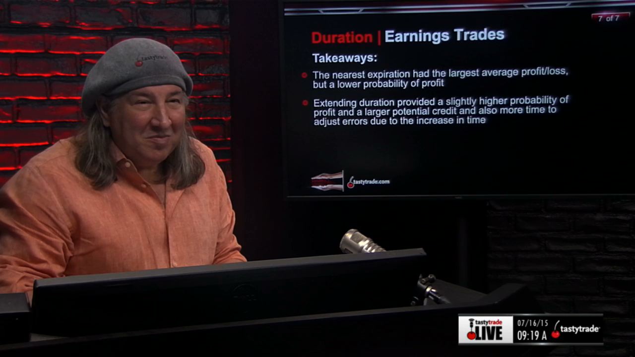 After looking at an extensive study, Tom Sosnoff and Tony Battista find out that using the shortest dated expiration provided the largest amount of profits and you were able to capture the highest percentage of the overall premium. If you were to use the longer dated expirations, you should see a small reduction in profits but a higher overall win rate.
