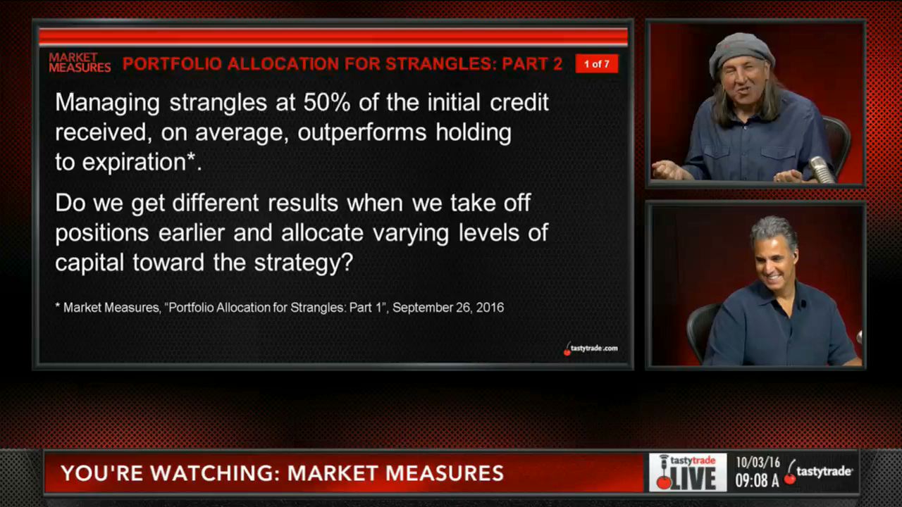 Watch this segment of Market Measures with Tom Sosnoff and Tony Battista for the valuable takeaways and the detailed results of our study on the optimal percentage of capital to allocate to a short Strangle strategy.