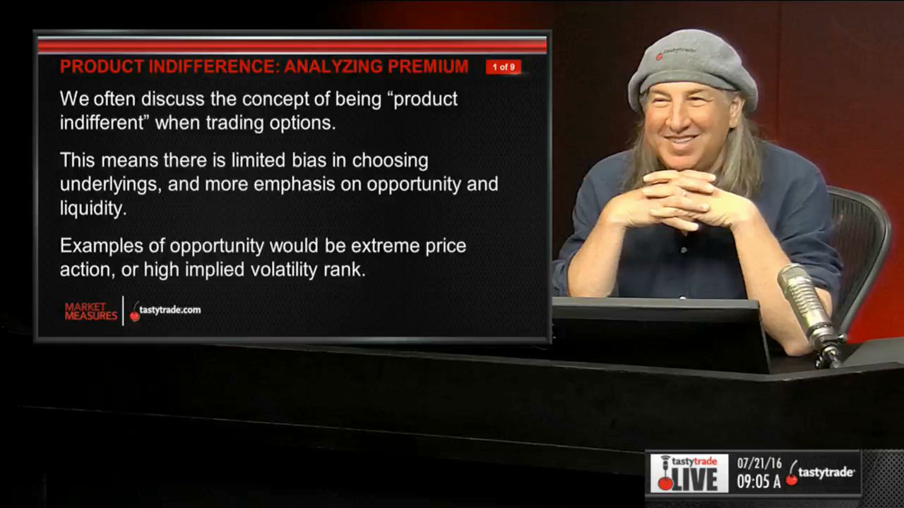 Watch this segment of Market Measures with Tom Sosnoff and Tony Battista for the valuable takeaways and results from our study which show why we believe in product indifference and maintain our focus on high IV, price extremes and strategy diversification.