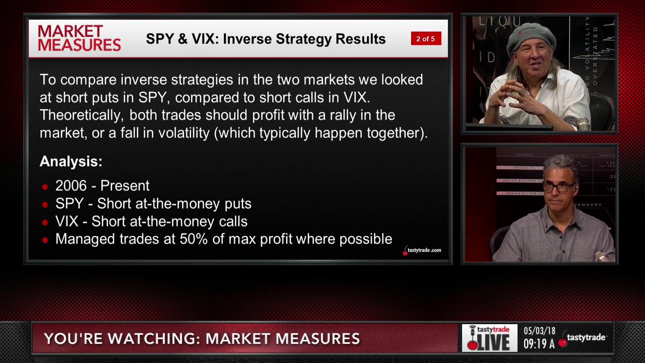tastylive has often discussed the inverse relationship between equities and implied volatility. Today, the team took that conversation a step further, comparing short puts in SPY to short calls in VIX. The products trade inverse to one another, so these opposite strategies could yield comparable results.