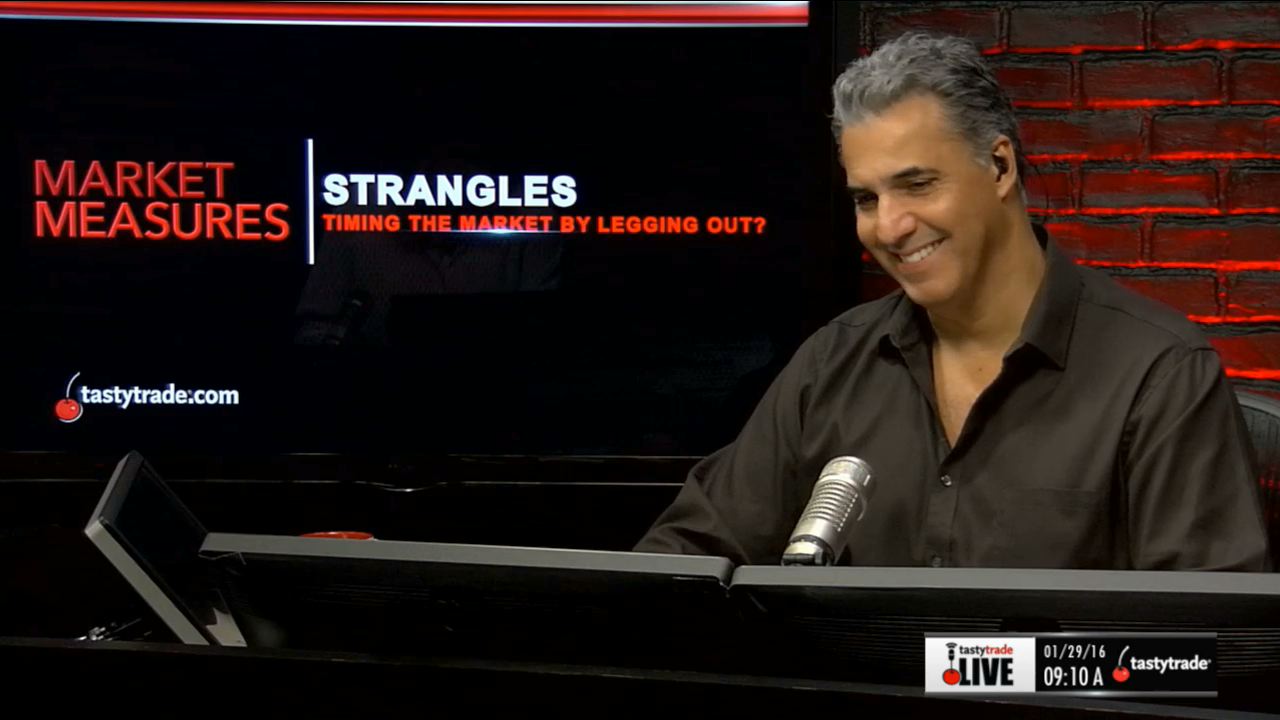Watch this segment of Market Measures with Tom Sosnoff and Tony Battista for the valuable takeaways and the results of our study on managing strangles as package versus legging out.