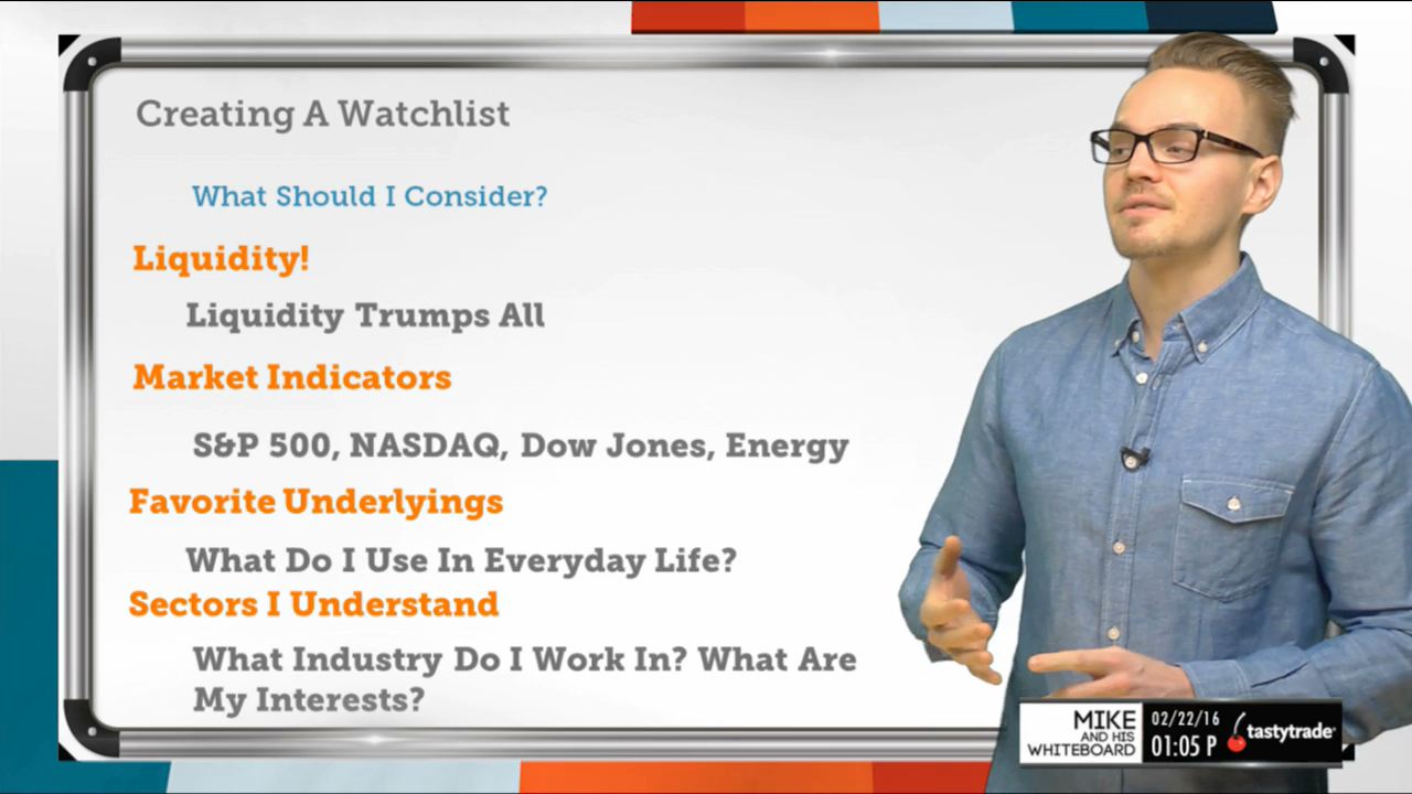 It's important to be able to see many aspects of the market all at once. Mike walks you through his keys to creating a watchlist, and shows you how to create your very own in dough!