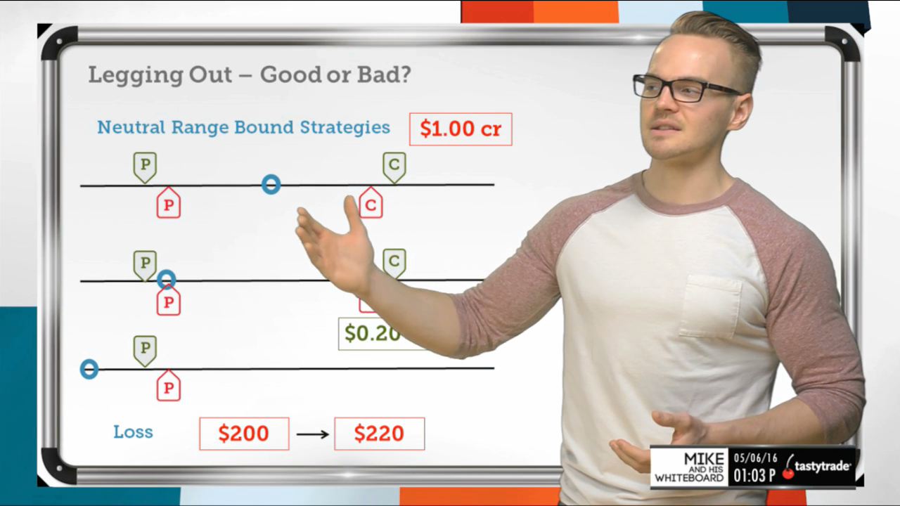 Legging out of a trade, which refers to closing just one aspect of a package trade, is usually a bad idea. Mike explains why this is, but he also offers up one scenario that makes sense to leg out of.