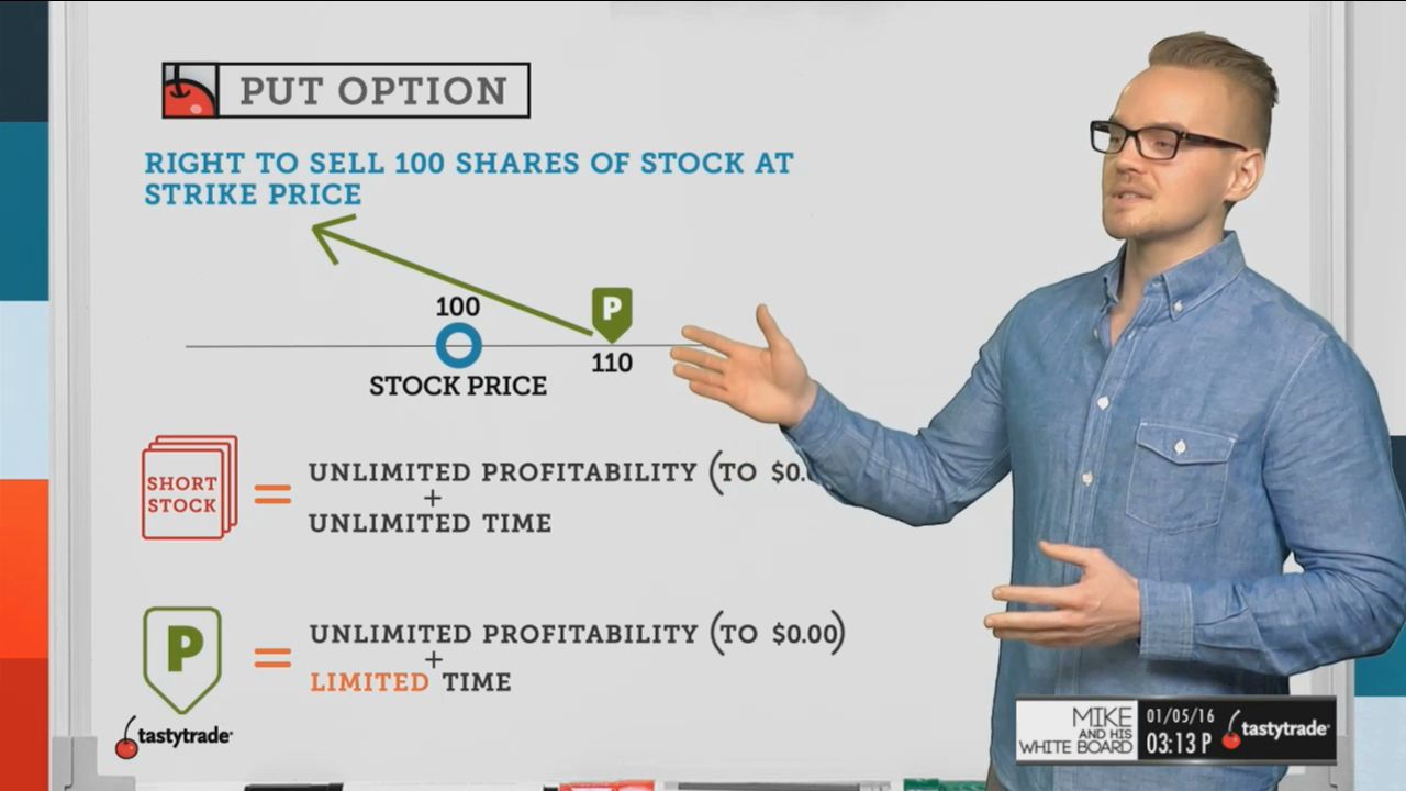 A put option allows the owner to sell 100 shares of stock at a certain strike price, for a certain amount of time.