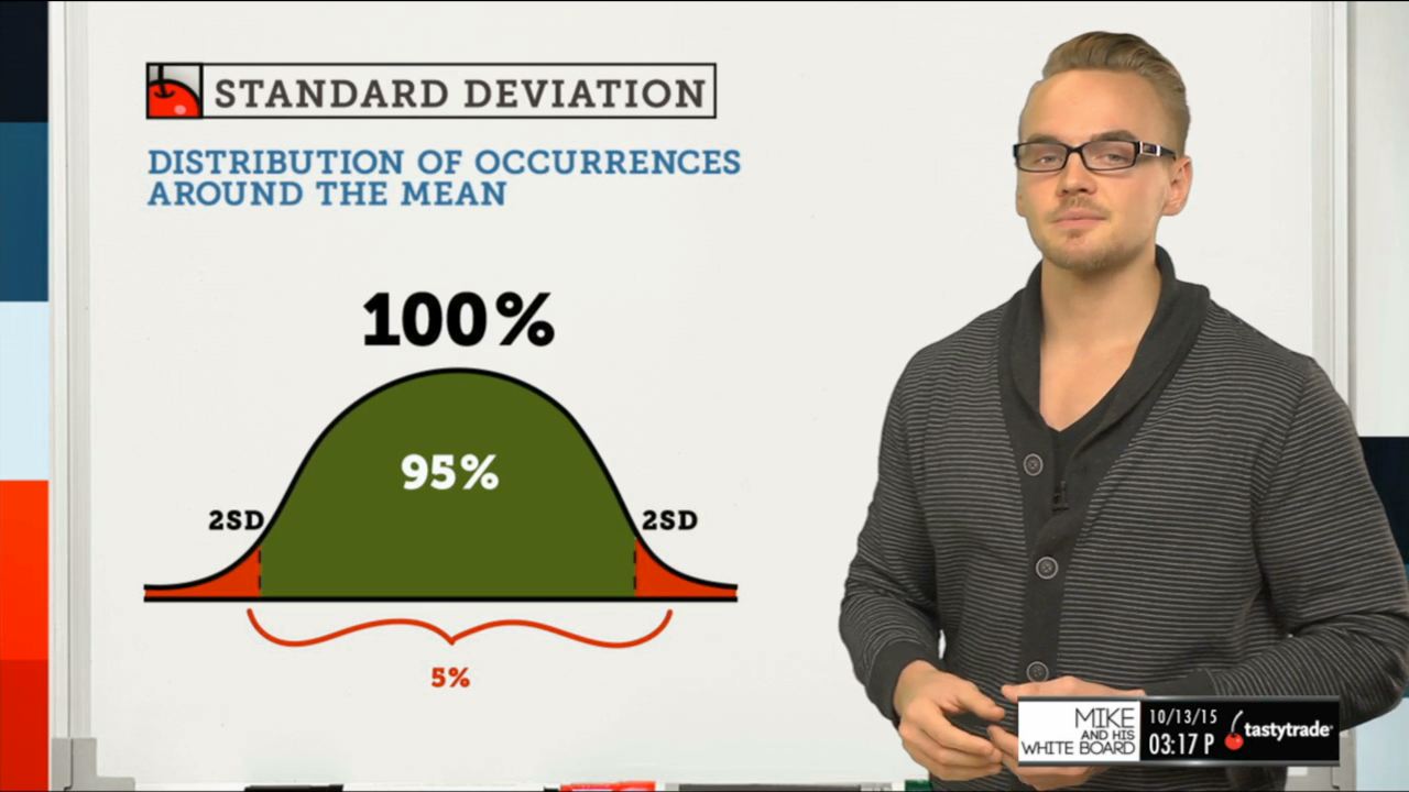 In options trading, we use standard deviation to give ourselves a visual representation of implied volatility.