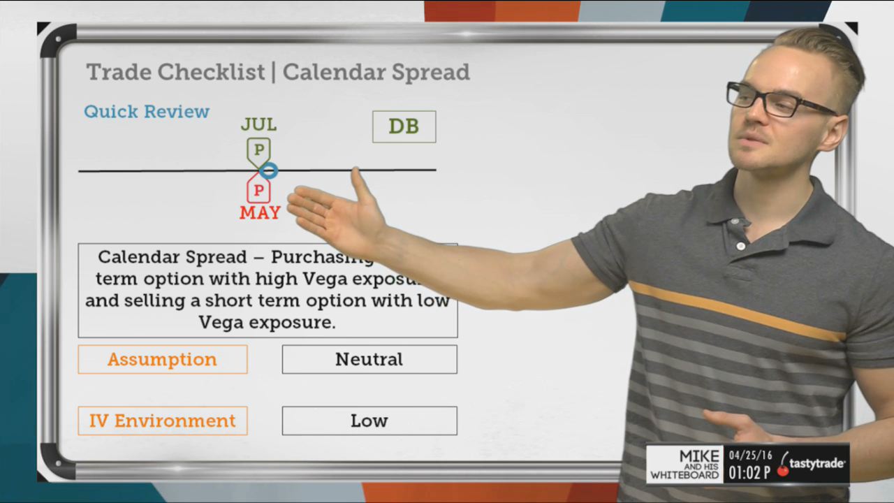 A Calendar Spread is a pure volatility play, that takes advantage of very low volatility environments. The directional version of this strategy would be a diagonal spread.