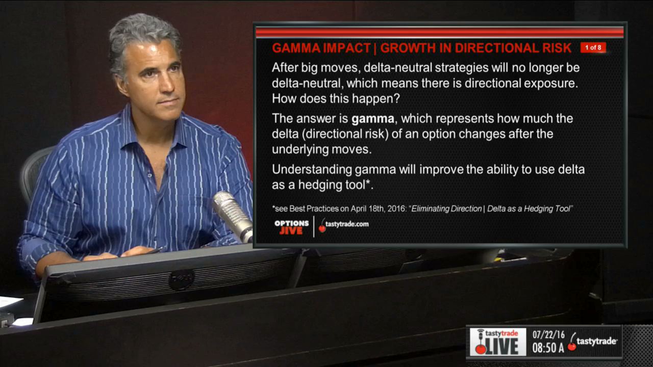 Watch this segment of Options Jive with Tom Sosnoff and Tony Battista for the important takeaways and a better understanding of how Gamma impacts our positions.