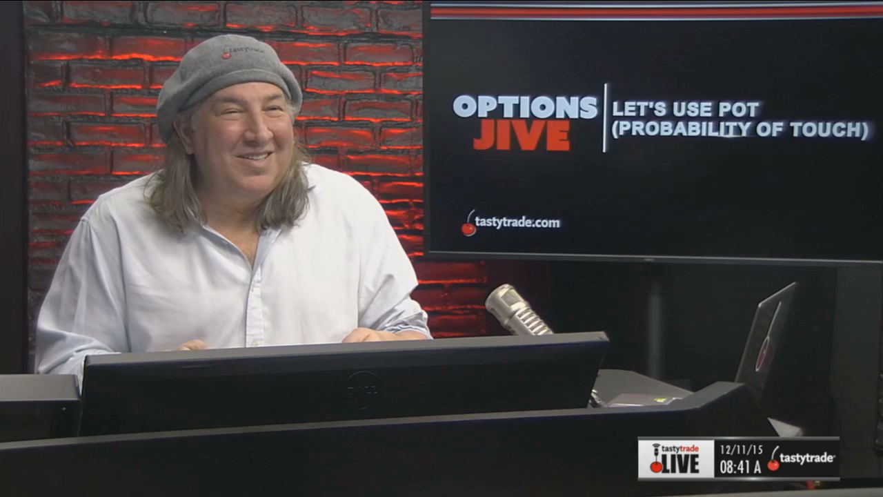 Watch this segment of “Options Jive” with Tom Sosnoff and Tony Battista for the takeaways plus other information on using probability of a touch (POT) and how this can help our trading.