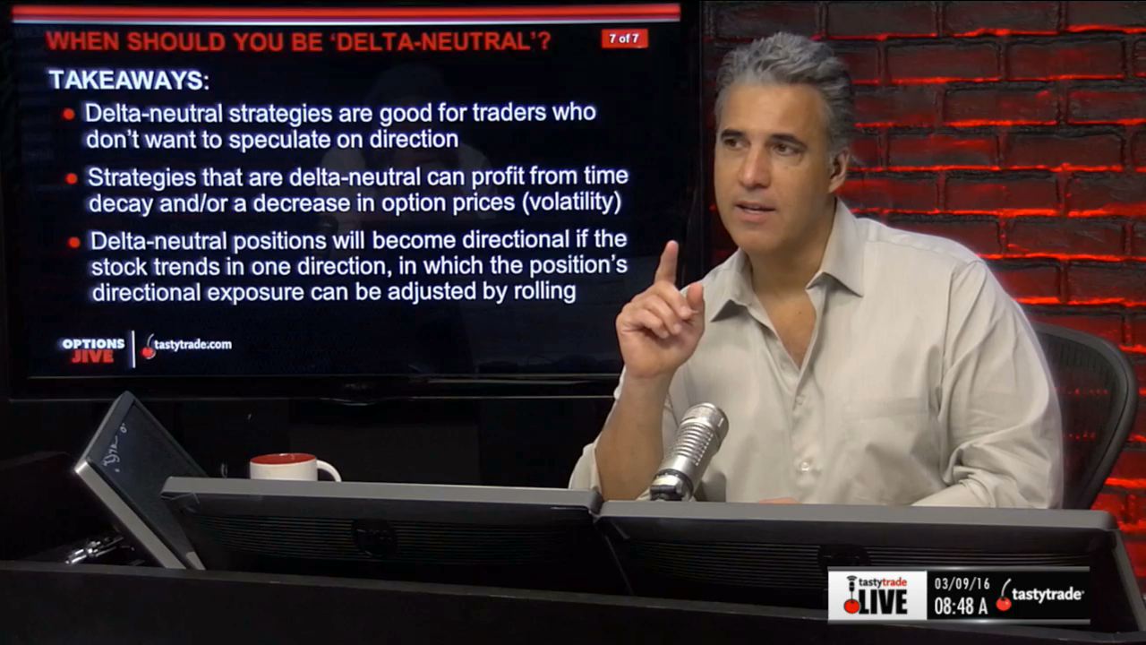 Watch this segment of Options Jive” with Tom Sosnoff and Tony Battista for the valuable takeaways and a better understanding of delta-neutral trading strategies, including what to expect as the underlying changes in price.