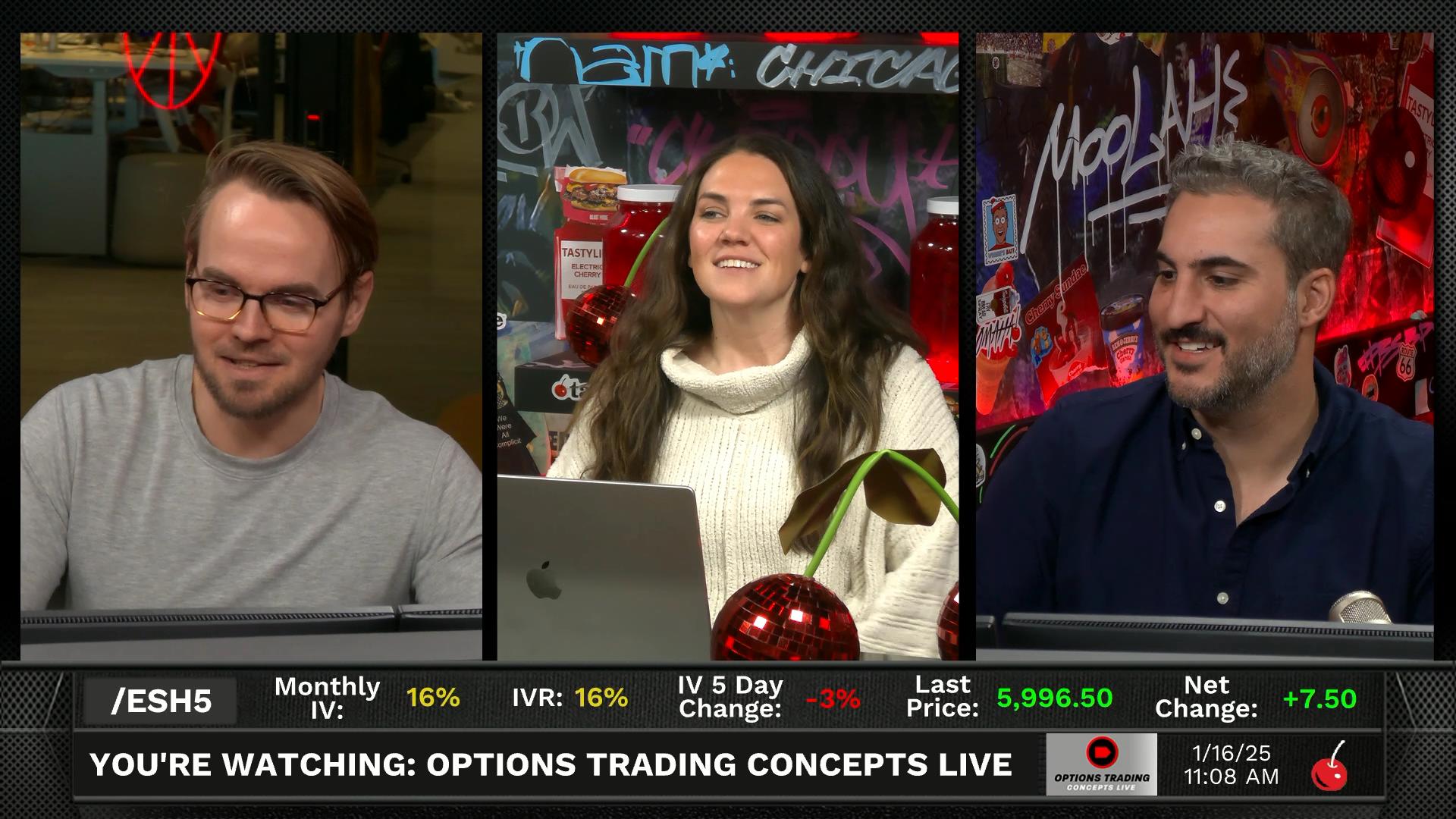 The hosts, Nick Battista, Mike Butler, and Katie McGarrigle, discussed options strategies and trade ideas while engaging with the live YouTube audience on "Options Trading Concepts Live." They explored current market conditions, investment strategies including diagonal spreads, and humorous banter over their plans and preferences. They also shared personal anecdotes, provided technical insights, and encouraged active audience participation. The team fielded questions from chat participants, offering options trading advice and guidance.