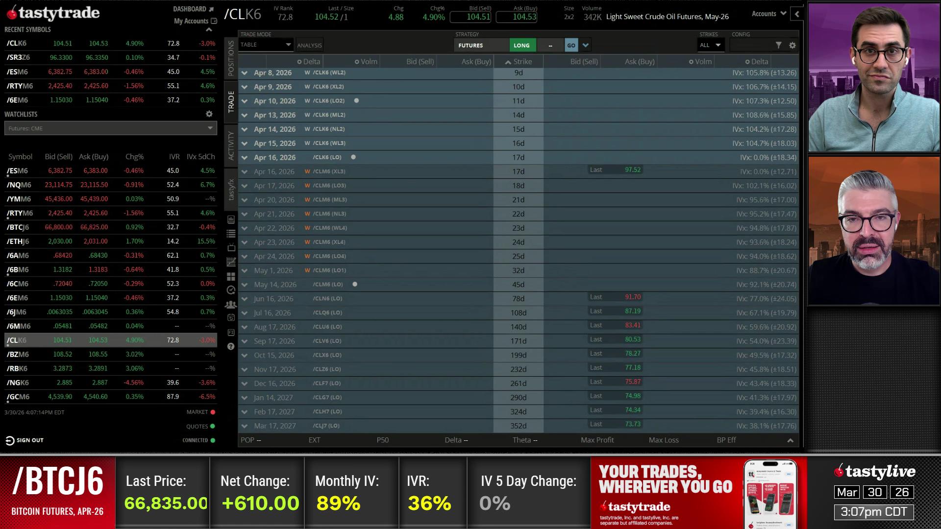 tastylive content is created, produced, and provided solely by tastylive, Inc. (“tastylive”) and is for informational and educational purposes only. It is not, nor is it intended to be, trading or investment advice or a recommendation that any security, futures contract, digital asset, other product, transaction, or investment strategy is suitable for any person. Trading securities, futures products, and digital assets involve risk and may result in a loss greater than the original amount invested. tastylive, through its content, financial programming or otherwise, does not provide investment or financial advice or make investment recommendations. Investment information provided may not be appropriate for all investors and is provided without respect to individual investor financial sophistication, financial situation, investing time horizon or risk tolerance. tastylive is not in the business of transacting securities trades, nor does it direct client commodity accounts or give commodity trading advice tailored to any particular client’s situation or investment objectives. Supporting documentation for any claims (including claims made on behalf of options programs), comparisons, statistics, or other technical data, if applicable, will be supplied upon request. tastylive is not a licensed financial adviser, registered investment adviser, or a registered broker-dealer.  Options, futures, and futures options are not suitable for all investors.  Prior to trading securities, options, futures, or futures options, please read the applicable risk disclosures, including, but not limited to, the Characteristics and Risks of Standardized Options Disclosure and the Futures and Exchange-Traded Options Risk Disclosure found on tastytrade.com/disclosures.