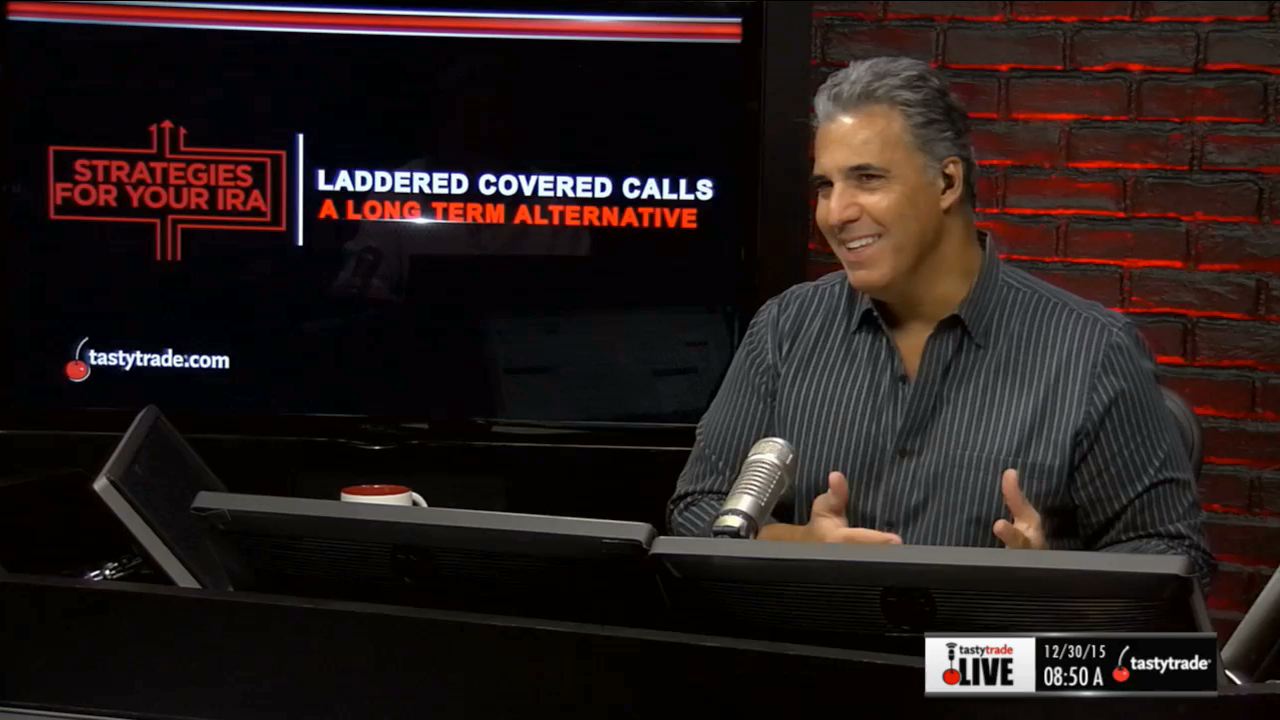 Watch this segment of “Strategies for Your IRA” with Tom Sosnoff and Tony Battista for the takeaways and the pros and cons of a regular covered call to a laddered covered call.