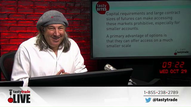 We often talk about a number of pairs trades that look to capitalize in certain market environments. However, a lot of these trades utilize futures products that cannot be traded in a smaller account. This is due to capital requirements as well as account limitations. That being said, are there ways that you can trade equivalent products in a smaller account? Today, Tom Sosnoff and Tony Battista explain how you can use ETFs that represent the same notional value of a number of futures contracts. They take this one step further and show you how many options contracts would be necessary to control the same notional equivalents. By using these smaller products, you are able to place the same pairs trades on a smaller scale!