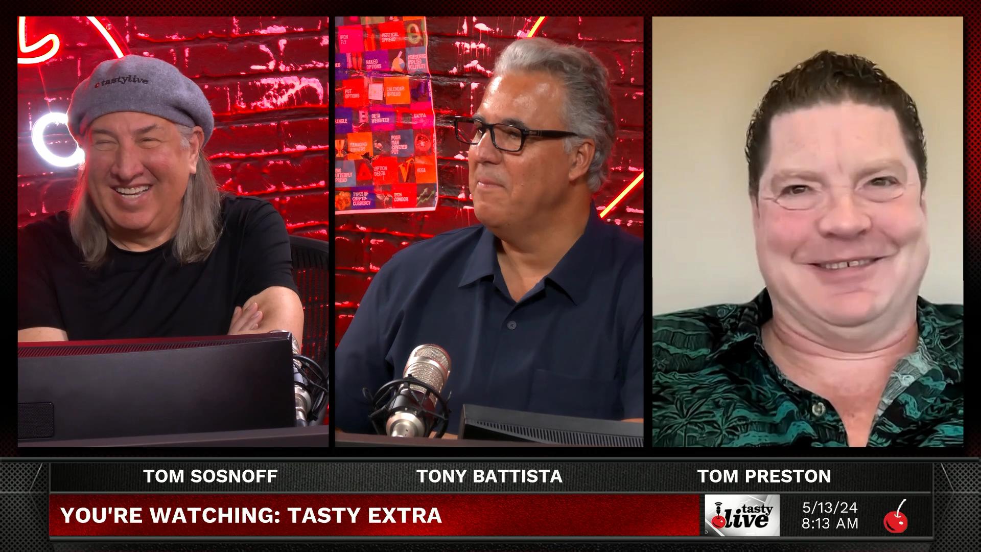 In a lighthearted discussion, Tom Sosnoff and Tony Battista reminisce about past moments, including mentions of old commercials, humorous anecdotes, and the logistical challenges of inviting guest Dylan Ratigan on the show while he is on a train crossing from Italy to Switzerland. There is also a brief touching on their beginnings and evolutions, such as the acquisition of the domain name tastytrade and the formation of their platform, highlighting Sosnoff's negotiations and creative process with his team. Additionally, the conversation touches on personal stories, including a jest about one of the co-host's health scare and familial dynamics, showcasing the close-knit and playful relationship among the team.
