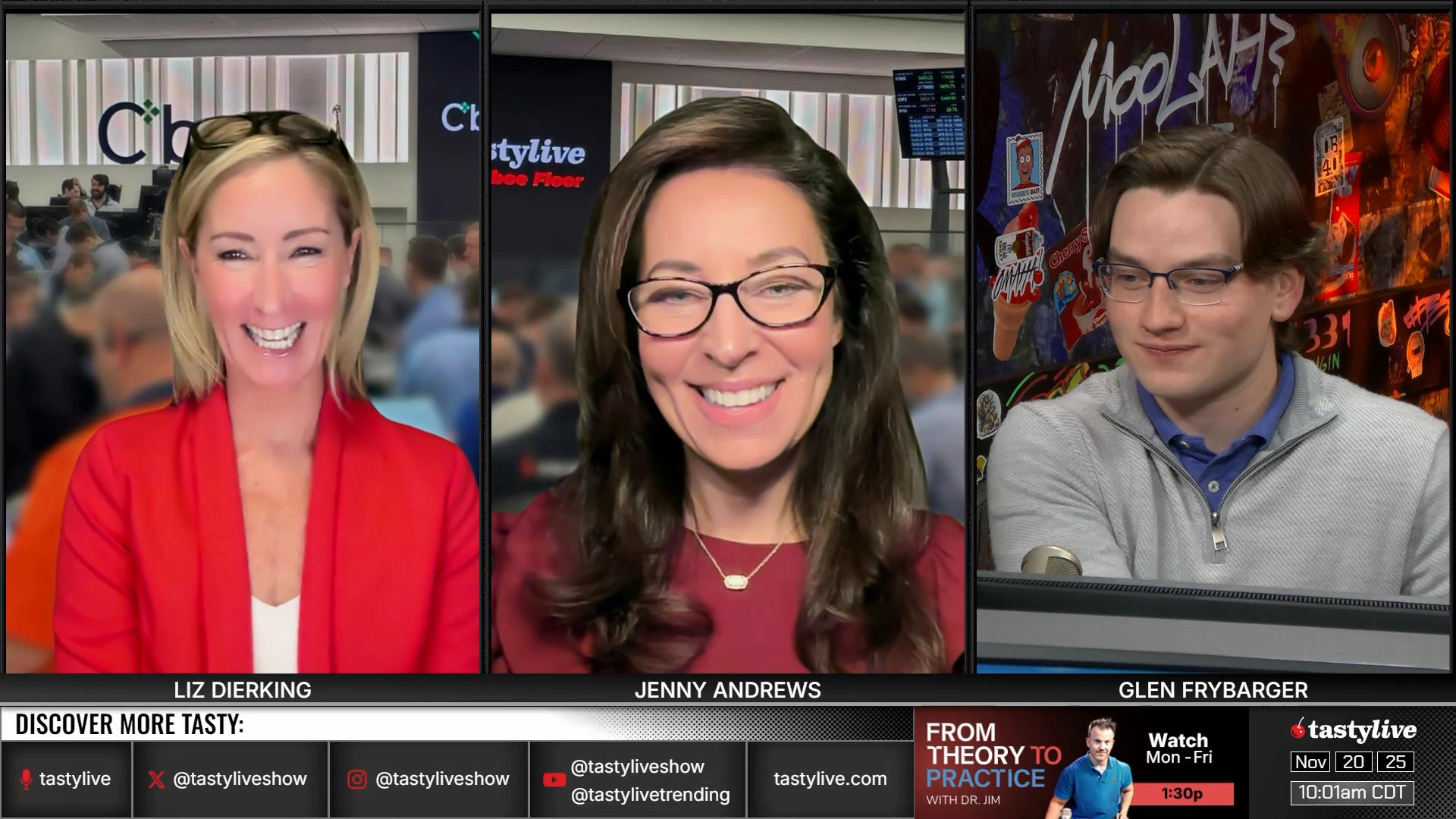 Former Floor Traders. Best Friends. Moms. Options Goddesses. Jenny Andrews and Liz Dierking break down the basics of trading options, while walking viewers through tastylive mechanics for portfolio management. Traders of all levels can glean valuable market knowledge from their research-backed segments, or they can submit their own questions via X, using #lizjny, to be answered live on-air.