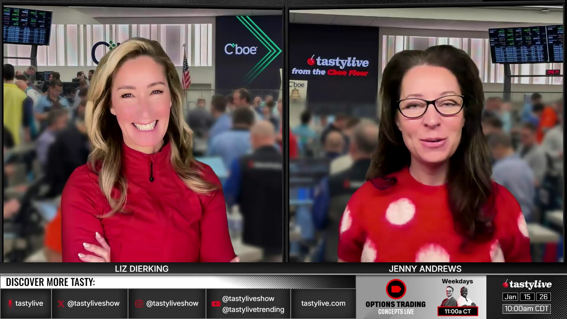 Former Floor Traders. Best Friends. Moms. Options Goddesses. Jenny Andrews and Liz Dierking break down the basics of trading options, while walking viewers through tastylive mechanics for portfolio management. Traders of all levels can glean valuable market knowledge from their research-backed segments, or they can submit their own questions via X, using #lizjny, to be answered live on-air.
