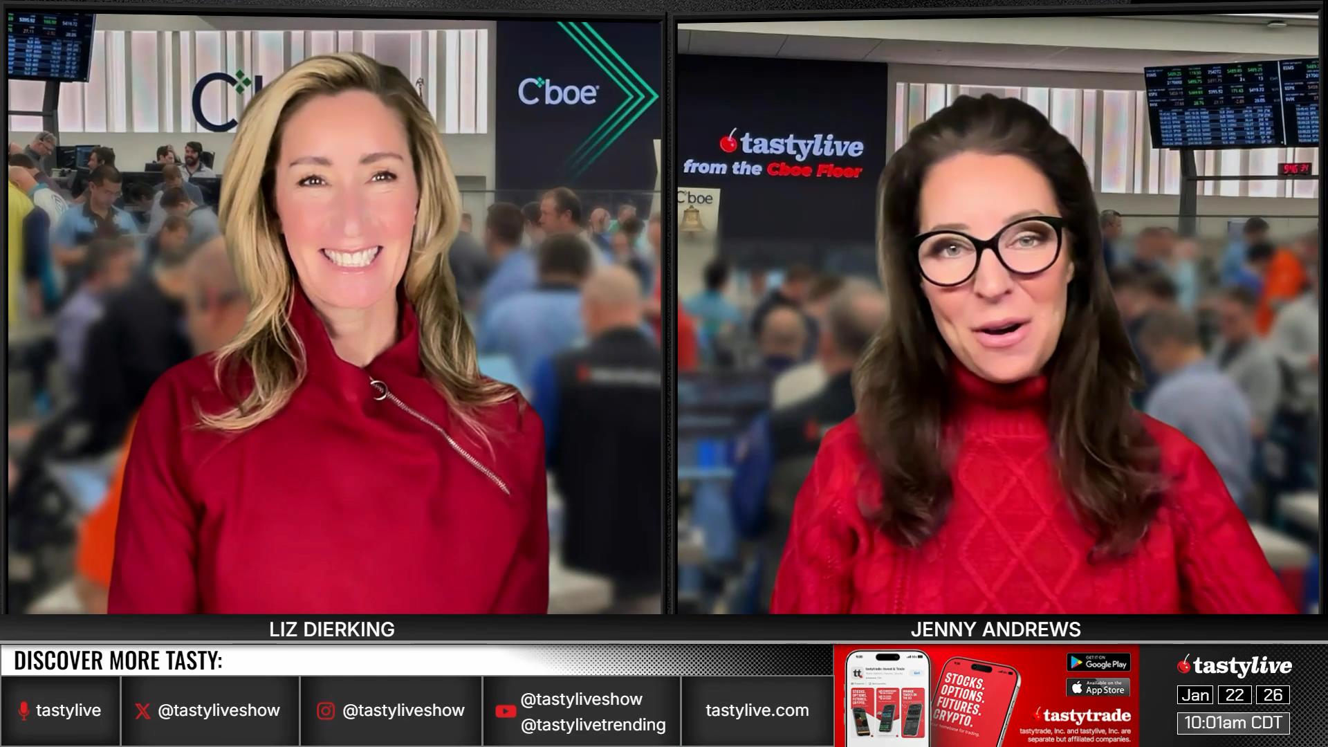 Former Floor Traders. Best Friends. Moms. Options Goddesses. Jenny Andrews and Liz Dierking break down the basics of trading options, while walking viewers through tastylive mechanics for portfolio management. Traders of all levels can glean valuable market knowledge from their research-backed segments, or they can submit their own questions via X, using #lizjny, to be answered live on-air.