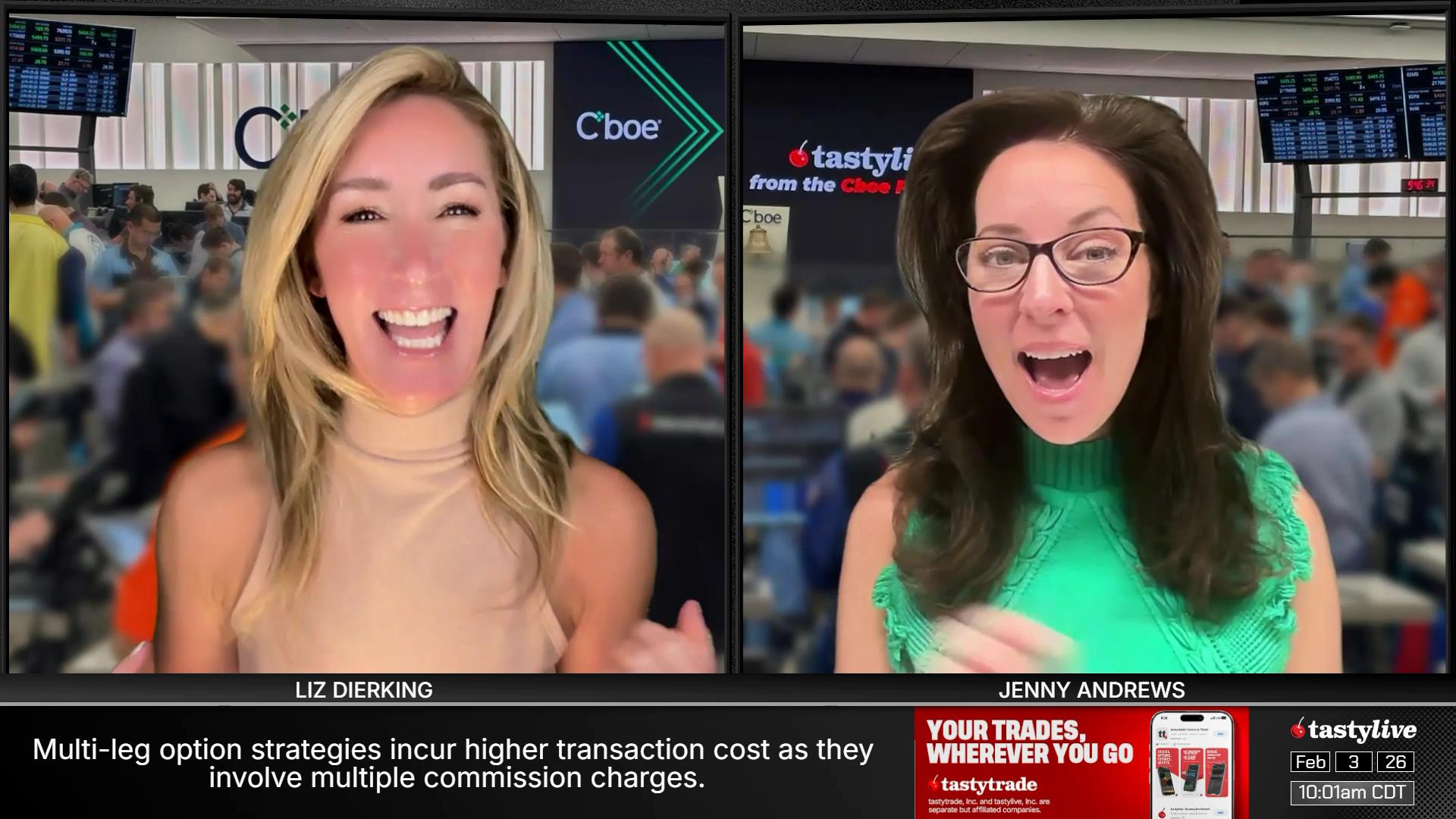 Former Floor Traders. Best Friends. Moms. Options Goddesses. Jenny Andrews and Liz Dierking break down the basics of trading options, while walking viewers through tastylive mechanics for portfolio management. Traders of all levels can glean valuable market knowledge from their research-backed segments, or they can submit their own questions via X, using #lizjny, to be answered live on-air.