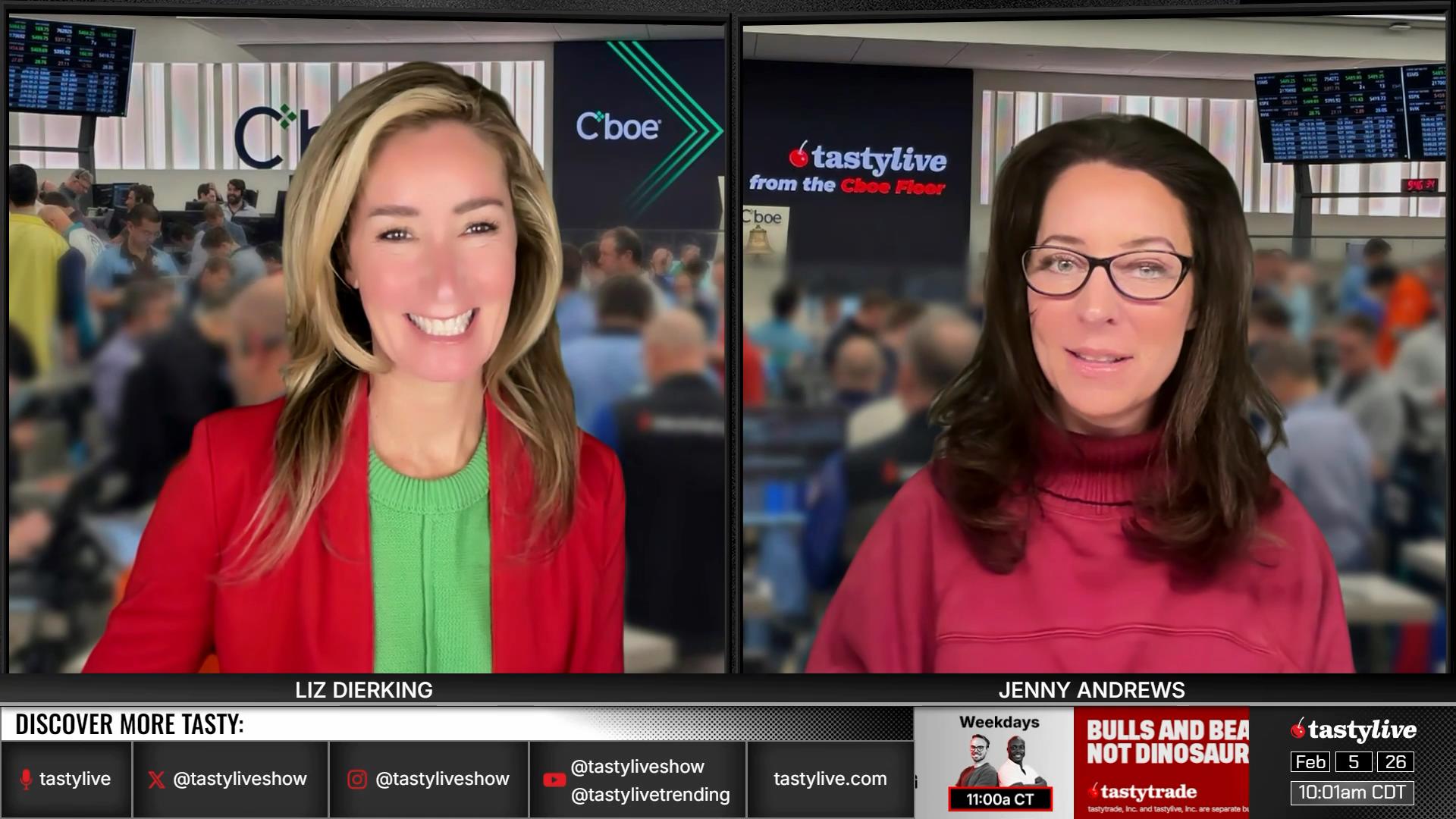 Former Floor Traders. Best Friends. Moms. Options Goddesses. Jenny Andrews and Liz Dierking break down the basics of trading options, while walking viewers through tastylive mechanics for portfolio management. Traders of all levels can glean valuable market knowledge from their research-backed segments, or they can submit their own questions via X, using #lizjny, to be answered live on-air.