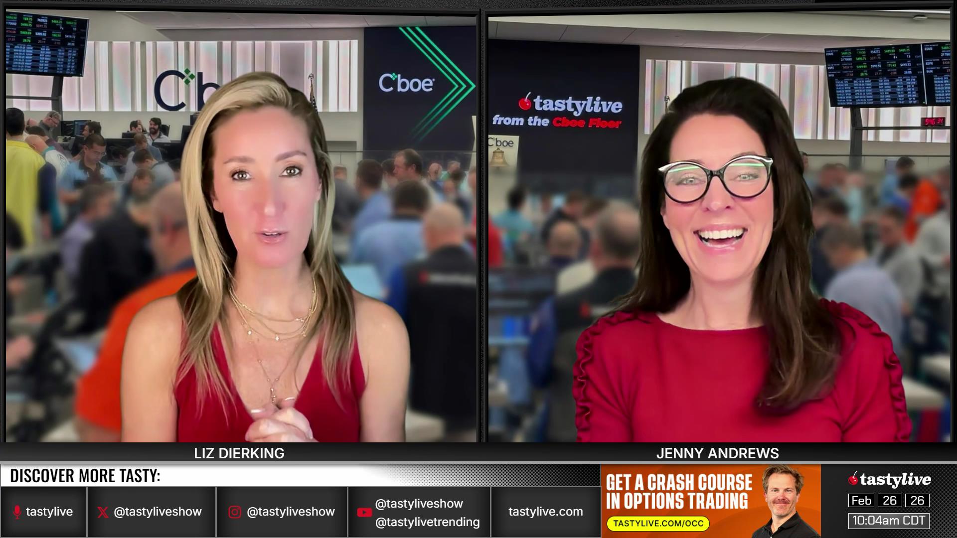 Former Floor Traders. Best Friends. Moms. Options Goddesses. Jenny Andrews and Liz Dierking break down the basics of trading options, while walking viewers through tastylive mechanics for portfolio management. Traders of all levels can glean valuable market knowledge from their research-backed segments, or they can submit their own questions via X, using #lizjny, to be answered live on-air.
