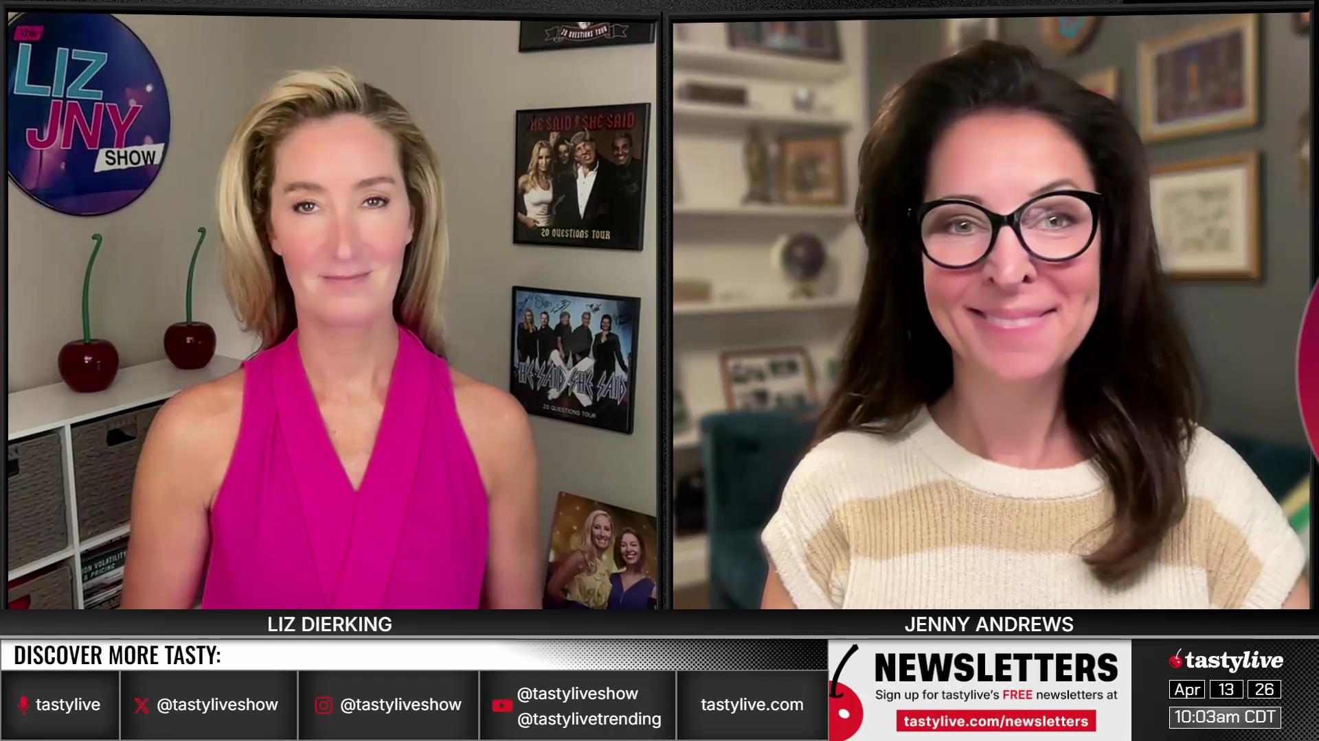 Former Floor Traders. Best Friends. Moms. Options Goddesses. Jenny Andrews and Liz Dierking break down the basics of trading options, while walking viewers through tastylive mechanics for portfolio management. Traders of all levels can glean valuable market knowledge from their research-backed segments, or they can submit their own questions via X, using #lizjny, to be answered live on-air.