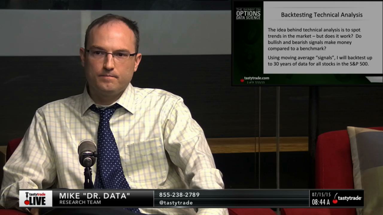Watch this segment of "The Skinny On Options Data Science" with Tom Sosnoff, Tony Battista and Dr. Data for the results of the studies and to learn if this form of technical analysis outperforms a buy and hold strategy or not.