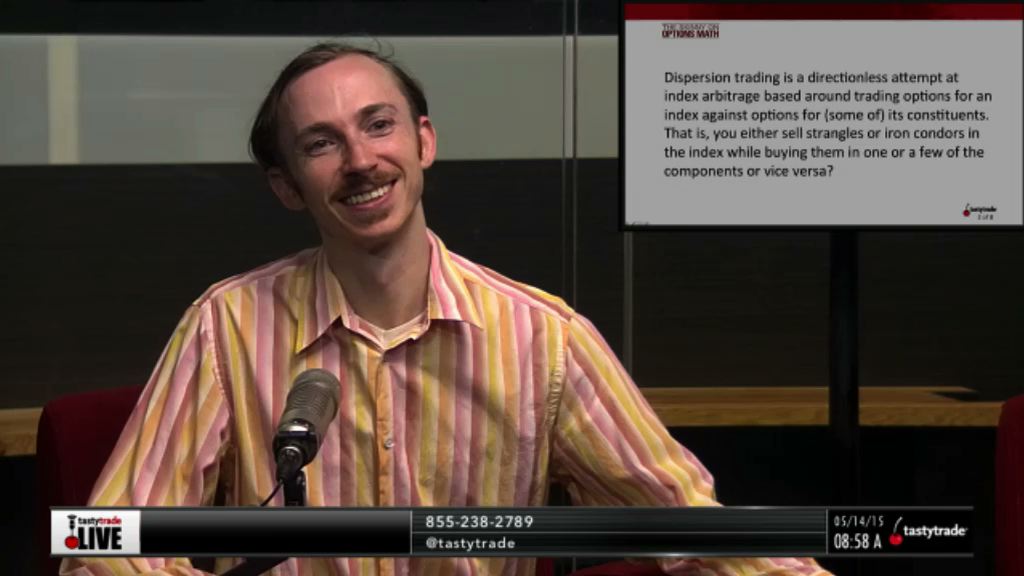 Today, Tom Sosnoff and Tony Battista are joined by Jacob Perlman as Jacob discusses Dispersion Trading. Next, Jacob explains why someone would use a dispersion trading strategy and what it attempts to accomplish. Finally, the guys talk about how the volatility can be different when looking at the index and its components and how you can use this to trade your beliefs about the future!