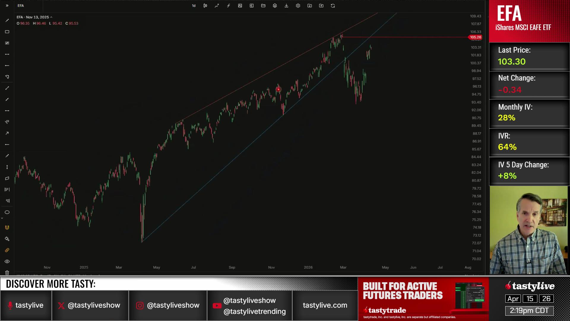 tastylive content is created, produced, and provided solely by tastylive, Inc. (“tastylive”) and is for informational and educational purposes only. It is not, nor is it intended to be, trading or investment advice or a recommendation that any security, futures contract, digital asset, other product, transaction, or investment strategy is suitable for any person. Trading securities, futures products, and digital assets involve risk and may result in a loss greater than the original amount invested. tastylive, through its content, financial programming or otherwise, does not provide investment or financial advice or make investment recommendations. Investment information provided may not be appropriate for all investors and is provided without respect to individual investor financial sophistication, financial situation, investing time horizon or risk tolerance. tastylive is not in the business of transacting securities trades, nor does it direct client commodity accounts or give commodity trading advice tailored to any particular client’s situation or investment objectives. Supporting documentation for any claims (including claims made on behalf of options programs), comparisons, statistics, or other technical data, if applicable, will be supplied upon request. tastylive is not a licensed financial adviser, registered investment adviser, or a registered broker-dealer. Options, futures, and futures options are not suitable for all investors. Prior to trading securities, options, futures, or futures options, please read the applicable risk disclosures, including, but not limited to, the Characteristics and Risks of Standardized Options Disclosure and the Futures and Exchange-Traded Options Risk Disclosure found on tastytrade.com/disclosures.