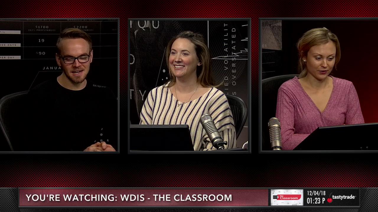Jessica & Brittany learn Mike's trick to estimate decay, or lack there of in narrow defined risk spreads. He explains how we can "fast forward" time by looking at the value of the same strike position in an expiration about to expire. For example, the difference in price between DEC and JAN would reflect about a 30 day passage of time, all else equal.